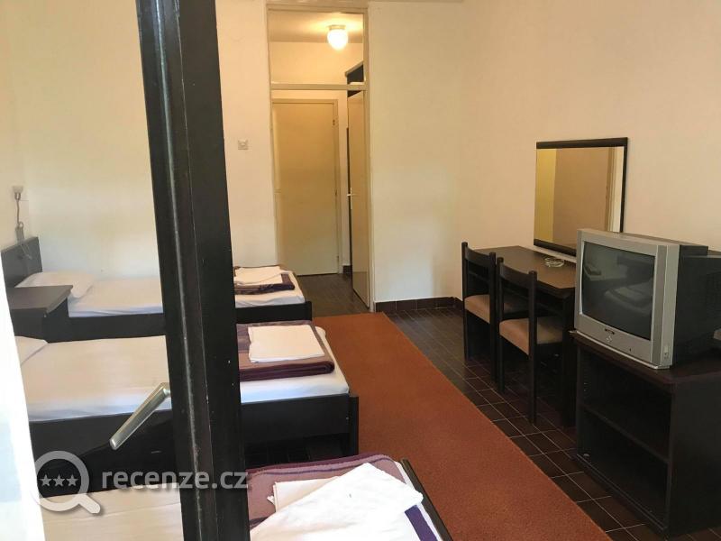 Koupelny po rekonstrukci, uklízečky každý den měnili ručníky a vše vytřeli. Pokoj byl pěkný, na přespání bohatě stačilo.