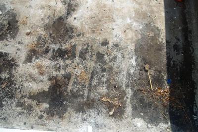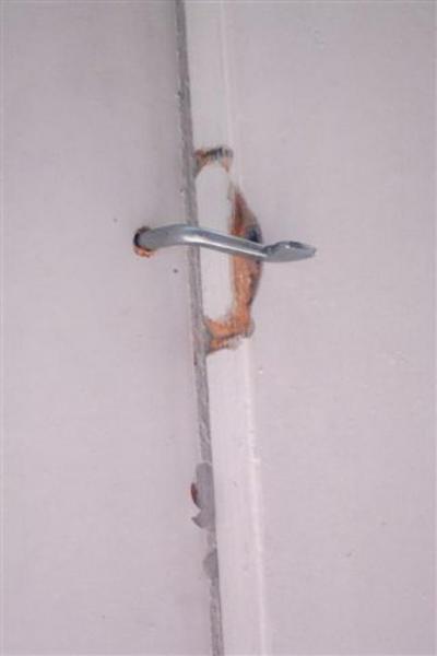 Venkovní a vnitřní omítky popraskané a vydrolené většinou zatřené bílou barvou.