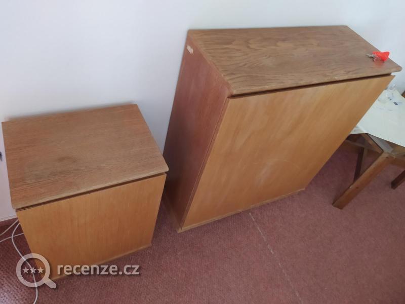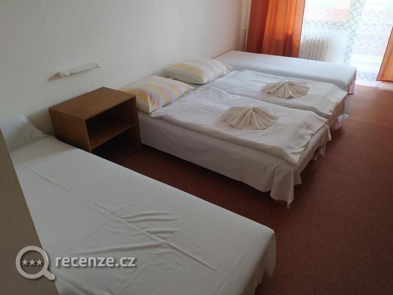 Po příjezdu nám bylo příjemnou paní recepční slušně, ale nekompromisně sděleno, že mají volný pokoj jen v "ubytování nižší kategorie", tedy bez ledničky a televize, konkrétně budova č.7. Nu což, nevadí, stejně jsme měli v plánu trávit pobyt spíše venku a pokoj užívat pouze coby noclehárnu. K ničemu jinému se tento brloh ani využít nedal. Přivítala nás zde vůně zatuchliny, něco jako ve starém sklepě, kde se nevětrá. V pokoji bylo několik skříní a komod (dle výrobního štítku z roku 1983), odpadkový koš taktéž z dob ČSSR, prastaré palandy tvrdé jako beton a 2 deky, vzhledem k jejich hmotnosti zřejmě též z betonu. Vše ovšem čistě povlečeno, k tomu čisté ručníky a osušky a 2 role toaletního papíru. Smrad částečně vyvětrán a loupající se omítka ignorována. Upadávající páka u umyvadla se dala při troše zručnosti celkem slušně ovládat a šplouchání protékajícího wc bylo po každém spláchnutí vyřešeno sundáním víka nádržky a ručním přizvednutím plováku. Celkově bylo lepší se v těchto místech příliš nezdržovat. Kdo jezdil v mládí na čundry a nevadí mu všelijaké zápachy a hřebíky trčící ze schodů, nechť se zde klidně ubytuje. Jen nečekejte vůbec žádný komfort.