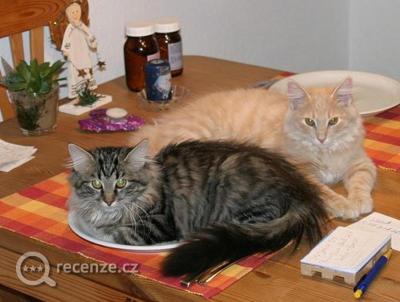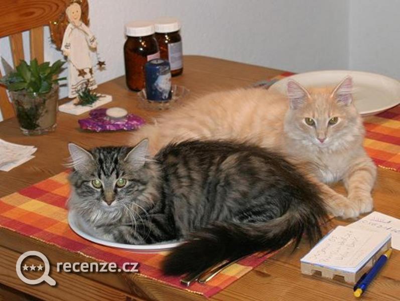 V restauraci i celém hotelu se volně pohybují kočky, sedají na židle, chodí po jídelních stolech.