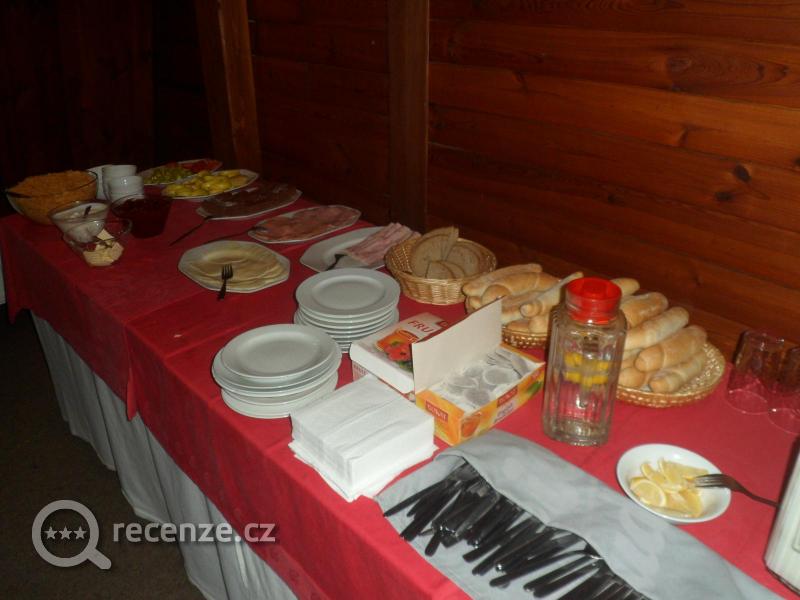 5) 2x snídaně formou bohatého bufetu - gothaj,junior,voda s citronem,margarín,rozkrájené jablko ( k obědu poté jablečné pyré (