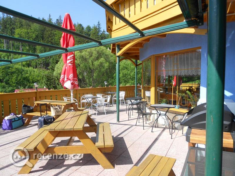 Parkování přímo u hotelu, hotel cca 15 min. chůze od centra Janských Lázní úpatí Černé hory, pěkná terasa s výhledem na protější svah a lesy
