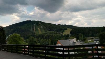 Spokojenost, hotel je čistý s příjemným personálem, nachází se před areálem se skokanskými můstky.