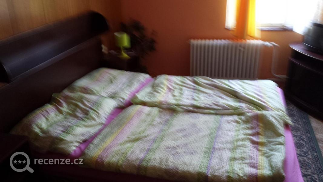 Vybavení už něco pamatuje, což to nám nevadilo, ale...V posteli se nedalo spát, jak byla tvrdá a v matraci se dala nahmatat pera, která celou noc tlačila do zad. Oceňuji snahu o to, aby každý pokoj měl vlastní sociální zařízení, i když si myslím, že snažit se za každou cenu nacpat koupelnu tam, kde by v žádném případě být neměla, je nesmysl. Dopadlo to tak, že "koupelna" byla vecpaná do předsíně, a to doslova. Otevřete vstupní dveře do pokoje, na pravo za rozklíženými zašoupačkami naleznete toaletu a naproti sprchový kout a 30 cm velké umyvadélko, u kterého se musíte krčit, pokud si chcete vyčistit zuby. Okna jsou rozklížená a špatně se otvírají/zavírají, jedno okno bylo zazděné. Povlečení a ručníky sice čisté, ale už by zasloužily výměnu. V pokoji nijak zvlášť uklizeno-prach, špína. Z pokoje výhled na sídliště a kurníky.