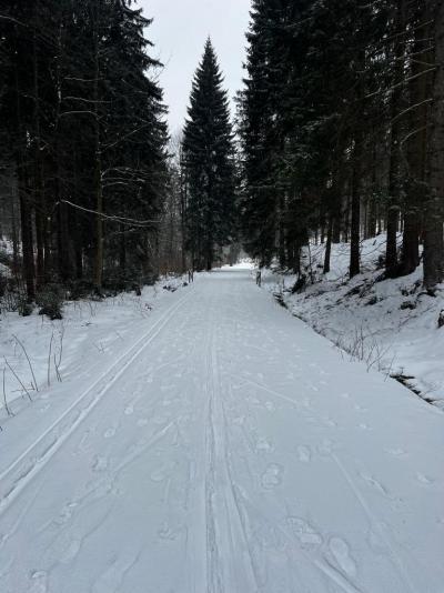 Propojené sjezdovky z Amálky až na druhou stranu. Děti i manžel si zalyžovali.