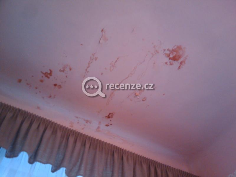 na pokojích plíseň na sociálních zařízeních, plíseň na stropě pokoje, opadává omítka na sociálním zařízení, rozbitá skla ve vnějších oknech, a podobné lahůdky