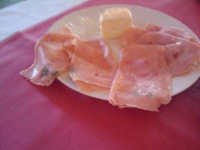 snídaně vceně pobytu - vše té nejnižší kvality, že existuje celozrnné pečivo to ve zdejší restauraci nikdo neví - nicméně to bylo to nejmenší. Snídaňový pomerančový džus chutnal asi jako směs jaru na nádobí a vylouhovaných šlupek z pomerančů. A vrchol všeho byla zkažená zelená šunka podávaná na švédském stole.
