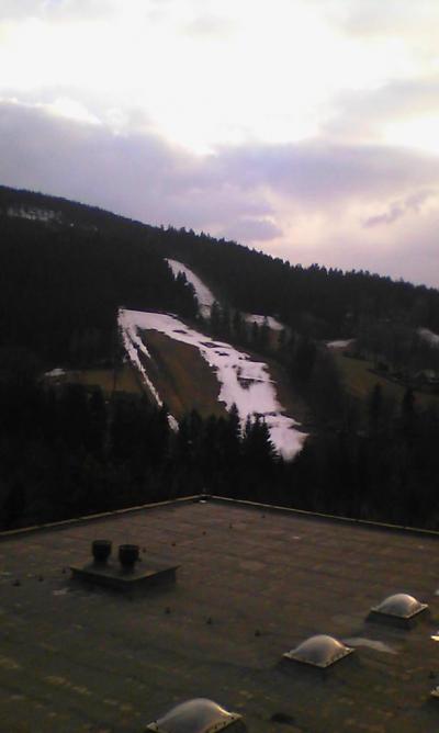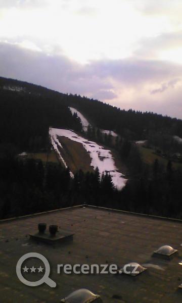 Na hotel jsme nejeli kvůli lyžování. Ale z pokoje jsme měli výhled na sjezdovku a tam bylo minimum sněhu.