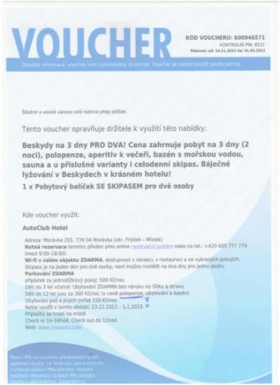 Bohužel voucher je v PDF formátu a není těžké si jej upravit nebo udělat dle něj nový, protože si mohou klienti obsah zkopírovat a upravit.