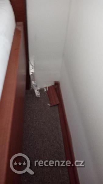 Na přespání dostačující. Za jednou z postelí odlouplý kovový roh. Garnýže na závěsy připevněny nakřivo (kazí estetický vzhled). V pokoji jsou plastová okna, pravděpodobně nějaké první generace, která jsou zkřížená, nedoléhají. Nedokážu si představit trávit tu pobyt v zimě. Sprchový kout s plísní (vliv na funkci nemá). Pozitivní je možnost ubytování se psem.