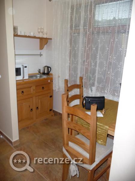 Penzion umístěný v rekonstruované vile v klidném prostředí. Pokoj typu apartmán(Viola) byl vybaven vším, co by člověk předpokládal ve ****hotelu. Čisto, vkusně zařízeno, kuchyňka s mikrovlnkou, varnou konvicí, základním nádobím, lednička, koupelna s vanou, WC samostatné. V pokoji manželská postel, příjemné matrace, deky, polštáře i povlečení - vše čisté, neopotřebované. Výhled do zahrady - klid, z kuchyňky výhled do ulice, ale hluk jsme žádný nezaznamenali. Velká LCD, rádio, CD přehrávač - možno půjčit CD v recepci.