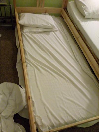 Vybavenie smradom od moču, bez svetla, zničené postele,