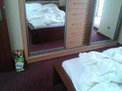 jen pro představu - předchozí hosté zanechali nespláchnuté WC, lahváče na pokoji, kompletně rozházená a bordelem zaházená postel, v koupelně se válely ručníky...atd.. což působí po vstupu do pokoje .. na nového hosta celkem nevěrohodně. Na druhý den, kdy jsme na kliku pověsili označení, že si přejeme uklidit pokoj... tak po návratu večer z města.. jsme cedulku našli na pokoji na posteli - nicméně pokoj byl opět neuklizen (nevysát). Další závadu, kterou jsme hlásily, že je ulomená deska u postele a taktéž, že v koupelně u sprchového koutu chybí více než polovina těsnění, které zadržuje vodu uvnitř koutu..... tj při sprchování veškerá voda, která sjížděla po skle... vytékala na podlahu...