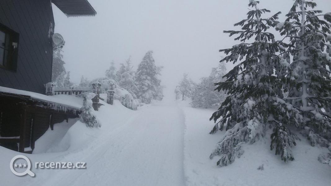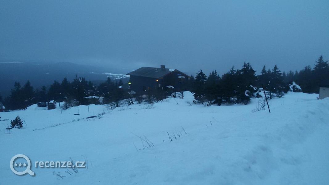 Hotel jsem vybral na základě lenosti dopravovat se na sjezdovky, vstřícné komunikaci s panem majitelem a možnosti míti sebou pejska.