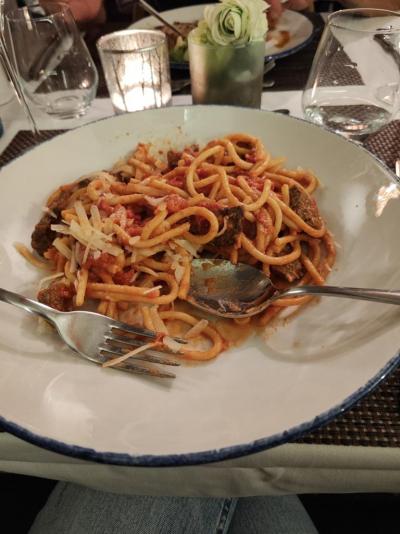 A však večeře katastrofa!!!! Měli jsme na výběr ze dvou předkrmů (cibuláčka a paštika), dali jsme si s manželem tu paštiku, po té co nám to přinesli, jsme si mysleli, že je to jeden velký vtip, obyč tousťák (mohl být aspoň opečený) a paštika snad nějaká kupovaná, horší jsme nejedli (nejsme nijak vybíravý ), druhé jídlo steak - vysušený a špagety (přinesli teda makaróny) nedovařené a maso gumové. Veliká škoda!!!! když je to 4* restaurace. Bohužel to kazí celkový dojem celého pobytu, byli jsme velmi zklamaní.