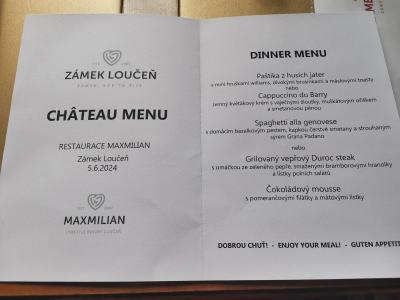 Měli jsme romantický pobyt na 2 noci v zámeckém apartmá. Ubytování přímo na zámku. Moc se nám líbilo, čisto, klid, pohodlná postel, velká vana,pekny výhled. 3chodova večeře v hotelové restauraci, na výběr bylo vždy ze dvou jídel. Bufetova snídaně, bylo toho na výběr dost, vše čerstvé. Chutnalo nám. Personál příjemný, ochotný. Využili jsme bazén se saunou a prohlídku zámku, taky na jedničku. Okolí zámku krásne, spoustu labyrintů. A mají tam krásný biotop.