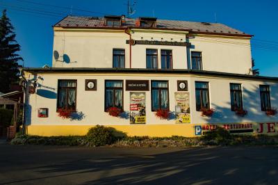 Týdenní pobyt v tomto zařízení byl pro nás opravdu ,blahodárný. Jsme starší manželé a prostředí hotelu nás ani nijak nevracelo v době,ani jiným způsobem nám nepřipomínalo komunistické perzekuce.Budova sloužila jako bývalá škola a později byla přebudována na hotel. Jsme v podstatě skromní a tak vybavení jak vnitřní ,tak venkovní nám nepřipadalo jako něco, co by nás mělo urazit. Je třeba vzít v potaz,že hotel je tříhvězdičkový a tudíž ve sprše nenajdete zlaté kohoutky a nečekejte ani osobní pokojskou. Hotel je uzpůsoben pro turistiku,slouží k regeneraci sil a k uspokojení základních lidských potřeb. Kdo jedete do skal jen proto,aby jste ukázali své nejnovější modely oblečení,super univerzální kolo či zářivě bílé SUV tak pro vás opravdu asi tento hotel nebude. Kdo ale hledáte potěšení z přírody,dobrou stravu a ochotný personál, pak se neobávejte toto skromné a vždy čistě uklizené zařízení navštívit.A to i v tom případě,že máte sebou děti.Trocha hraček přímo na terase a hlavně 50 m vzdálené dětské hřiště jistě plně uspokojí jejich temperament.