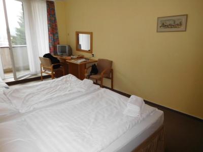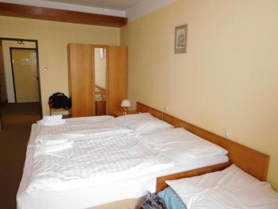 Skromně zařízené pokoje s původním nábytkem kolem roku 1980. Starý stolek, telefon ke kterému nemáte žádný tel. seznam ( např. číslo na recepci, wellness, bar ..) TV funkční, ale d.o. jde na 50%. Nicméně úžasný výhled na okolí, koupelna se sprchovým koutem a wc nově zrekonstruováno. Sociální zázemí je nové a patří k tomu nejlepšímu co nyní hotel nabízí. Některé pokoje nedisponují topením a je zde zima. Na baru ale ochotně pokoje vymění. Ložní prádlo v pořádku a uklizečka se stará. Pouze zaměňuje mýdlo a sprchový gel, takže u sprchy máte běžné mýdlo :-;
