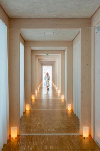 Okolie hotela je absolútna paráda, romantika. Neviem si predstaviť nič lepšie, kde by sa dalo ,,vypnúť". Hory, pramene, pramene, hory. Ajurvédsky pavilón je paráda. Musela to byť veľká investícia. Veľmi sa nám páčil, človek leží v oddychovej miestnosti na ležadle a vlastne hľadí do lesa... aj miestnosti masérov, každá s vlastnou parnou ,,saunou" boli super. Indický nábytok, masérske stoly z Indie. Fakt India uprostred Vysočiny!