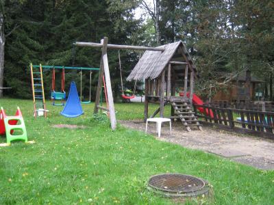 V prostranství před hotelem je dětský koutek s trampolínou, skluzavky, pískoviště ale co nás nejvíce překvapilo byla zvířátka. Je to velké oživení koutku.