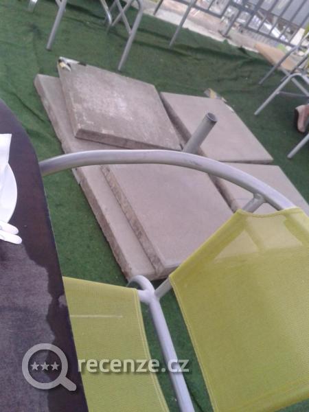 Stravování byla ještě větší katastrofa! Co se týče té romantické večeře při svíčkách a s přípitkem s výhledem na Třebíč, tak opak byl pravdou. Vešli jsme do restaurace a všechna okna zatažená roletami, navíc restaurace působila na první pohled nevzhledně. Abychom měli ten romantický výhled, museli jsme si sednout ven na terasu, kde bylo docela chladno. Z terasy byl tedy opravdu krásný výhled, ale prostředí, ve kterém se sedělo bylo šílené. Všude shrnutý roztrhaný koberec, dlaždicové kostky od držáku na slunečníky byly rozházené po terase, navíc tam měli rozbité okenní sklo od dveří - to by vůbec nevadilo, to se stane, samozřejmě, ale co bylo hrozné je to, že střepy byly neuklizené a hned při dosednutí ke stolu jsem si zapíchla střep do ruky! Číšník si od nás zvláštním způsobem sebral poukázku na večeři, ve které byly veškeré podmínky večeře jasně napsané - přípitek, svíčky, polévka, hlavní chod, zákusek. Přípitek a svíčky - to se absolutně nekonalo, polévka byla docela dobrá, další jídlo bylo otřesné. Měla jsem pocit, že večeříme v nějaké obyčejné 4. cenové hospodě a ne v hotelu. Jako zákusek servírka donesla jeden kopeček zmrzliny ve skleničce. Přišla ke stolu, z dálky se jen naklonila, položila skleničku na okraj stolu a řekla tady je zákusek. V tu chvíli jsme měli pocit, jako bychom ji vyloženě obtěžovali svoji přítomností.