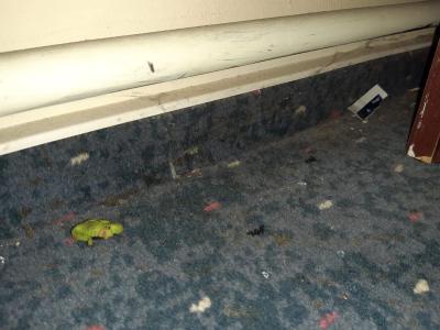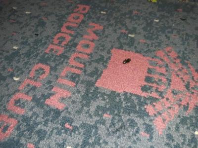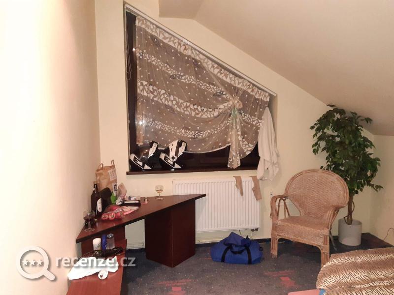 Špína, neuklizeno, ponurý starý interiér z 90 let. Bývalý nevěstinec s tyčí u nazénu, koberec v pokoji Moulin Rouge Club, brouci v pokoji, holé stěny, ani jeden háček v koupelně, plíseň a rezavé kouty v koupelně,pavučiny.