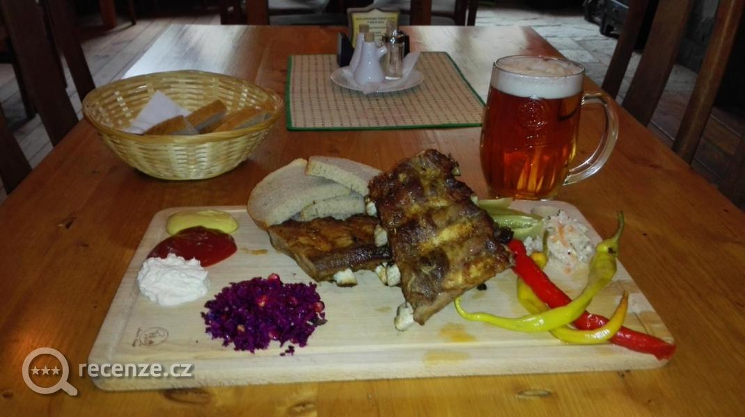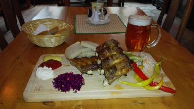 Měli jsme polopenzi v hostinci, vyzkoušeli jsme místní speciality - žebra, řízky. A hlavně výborné točené pivo - to jsme měli každý večer.