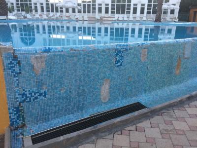 Vše zavřené nebo vypuštěné a to v hlavní sezóně. Okolí a hotel jako by byl před demolicí, nebo rozsáhlou rekonstrukcí.