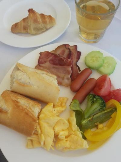 Na snídaně celé plástve medu, džemy, Nutela, výběr dobrých káv z automatu + filtrovaná, kakao, mléko, teplé mléko, vše z anglické snídaně, velký výběr čerstvé zeleniny (i teplé a sterilované, olivy), ovoce, salámů, sýrů (dokonce celé kolo Parmazánu - uvnitř nesakaný), různé cereálie, pečiva dost i sladkého pečiva, džusy...... Palačinky, vafle, pancakes, vejce na mnoho způsobů připravovali čerstvé přímo před námi... Dokonce šampaňské!