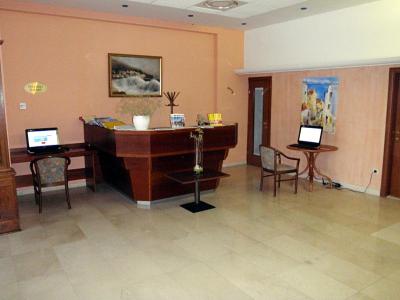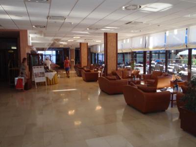Hotel je dobře vybavený, klimatizovaný, recepce se směnárnou (pouze EUR), internetový koutek - přístup ke 2 počítačům s internetem zdarma, WI-FI také zdarma. Prostorná restaurace, místnost s televizí, aperitiv bar, kde si po celý den až do večera můžete dát drink, kávu či zákusek. Obsluhované je i posezení v hotelovém atriu, kde se večer odehrávají animační programy - hudba, zábava pro děti, kouzelnické představení, atd. V atriu naleznete i několik obchůdků se suvenýry, z vnějši strany hotelu i banku, lékarnu a obchod s plážovými a sportovními potřebami, škola potápění. Před hotelem je parkoviště - 6 EUR/den a tenisové kurty.