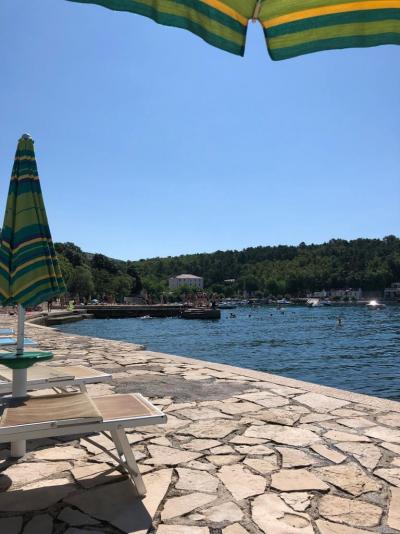 Pláž se nachází od hotelu cca 150 metru. Podle toho samozřejmě, kam chcete jít. My chodili na kamennou pláž, výběrčí vybíral za 2 lehátka a slunečník 80 kun. Dávejte si na nej pozor, chce po vás klidně i 90 kun! Také jsme byli na písčité plazi, která byla super. V moři plave hodně malých rybiček, ty nám ale vůbec nevadily. Mate tu také velký výběr atrakci, jak už padák, UFO nebo banán.