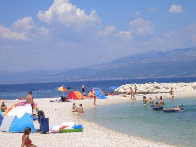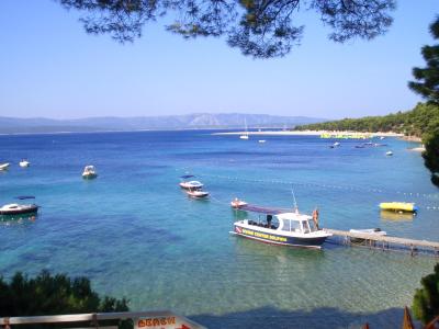 Zhruba 200 m k moři (menší pláže), na Zlatni rat asi 700 m. Všude čisté modré chorvatské moře. Jedinou vadou je, že u moře nejsou nikde sprchy. Praktikovali jsme to tak, že zázemí jsme měli u hotelového bazénu a k moři jsme chodili vždy na hodinu až dvě a pak zase zpátky.