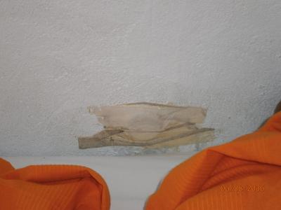 jedna z postelí je v místě bývalé kuch. linky,nad hlavou máte ještě skříňky a na úrovni matrace se můžete po odlepení papírové pásky připojit na odpad.Pancéřová hadička spojuje dva vývody zřejmě po ohřívači vody.Flex hadice zapojená do mísy je do rohu podepřena klackem,tudíž máte strach se pohnout.V cimře nedýchatelno,na terase krásná plachta a rákos,tudíž pokud prší,tak je tento prostor pro ,,stravování" zcela nevhodný.