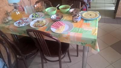 Raklamované čtyřchodové menu.haha.Nejdříve se nám snažil správce či delegát namluvit,že jde o tiskovou chybu.Prý salát nebo dezert.To ovšem neseděl počet chodů.Po upozornění že polévka má být také součástí čtyř chodů, a že hlavní jídlo a salát nebo desert nedá dohromady čtyři jídla ani náhodou,nám odpověděl,že polévku nikdo nechce.Všichni hosté ji ale chtěli.Od úterý už byli tedy čtyři chody.O jejich kvalitě by se dalo psát dál,ale neotrávili jsme se... Za zmínku stojí deserty.Tři kousky,rozumějte čtverečky 1x1cm se lžičkou šlehačky,nebo jedna zavařená švestka,případně jeden kousek oplatky se šlehačkou.O salátech nemluvě.Další kapitolou byli snídaně.Ovoce a zelenina žádné,jeden salám,jeden sýr,máslíčko,džem nebo med.Když byl párek nebo dvě lžičky míchaných vajec dostali jste je přímo na stůl se zvláštní prupovídkou.Oněch prupovídek jsme slyšeli za dovolenou více každý den.