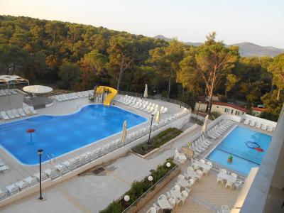 Byli jsme ubytování ve třetím patře, s výhledem na bazén a okolní piniové háje (hotel je poslední budova , dál nic). Což se nejdřív jevilo jako výhoda, ovšem pokud vám nevadí, že hned pod oknem vám ve 21 hod. začne večerní program - caraoke, disco, hádání filmových písní.. končící před půlnocí. I přes zavřená okna to máte, jako byste tam seděli, s malýma dětma, které se potřebují vyspat, nic moc. Totéž ráno - v 6:00 nastupuje četa na úklid bazénů, začnou šoupat lehátky a drhnout dlažby smetáky, tak hezky se to rozléhá... :-) Ale dovolenou nám to nezkazilo, po pár dnech jsme si zvykli. JInak pokoj prostorný, čistý, přistýlka v podobě rozkládacího gauče celkem pohodlná. Úklid pravidelný, výměna ručníků asi každý druhý den. Celkově jsme byli spokojení.