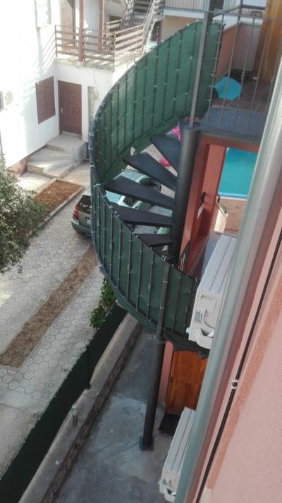 Přístup do apartmánu ( v podkroví) je po kovových točitých schodech ,opatřených sítí která je upevněna páskami. Zbytky pásek trčí na zábradlí tak že se nedá použít aniž by se člověk bál že si roztrhne ruku.