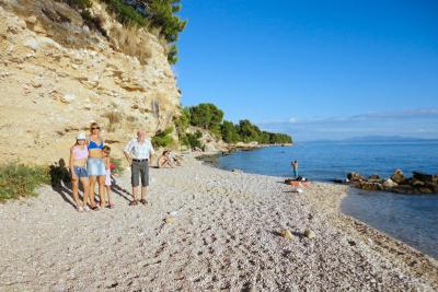 Pláž typická pro Chorvatsko - kameny. Ale věděli jsme předem, jak to tam vypadá. Jak jsme vyřešili přelidněnost pláží jsem uvedla už na začátku. Fajn bylo, že nebyl problém dojít si třeba na občerstvení nebo na zmrzlinu. Nabídka různých vodních sportů byla dostatečná, využili jsme možnost výletu do Mostaru z nabídky, kterou nám zprostředkovala Vaše delegátka.