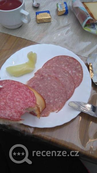 Strava česká,varil ju český kuchár.Večere boli dobré,čo nám skutočne chutilo boli polievky, druhé jedlo slabšie ale boli aj svetlé momenty ako napr. vypr.rezeň alebo kura s ryžou.. čo nám ale absolútne prekážalo bola úplná absencia zeleniny a šalátov..nedostali sme nič, ani len kyslú uhorku..Raňajky najväčšia katastrofa,,4 kolieska podivne vyzerajúcej salámy, 1 masielko, 1 kúsok papriky,prípadne 2 mesiačiky paradajky(to sa striedalo),,iný deň miesto salámy syr,posledný deň 2 hydinové párky, v strede týždňa 2 koblihy-kto sladké neje alebo jesť nemôže,má proste smolu :) úroveň žiadna...
