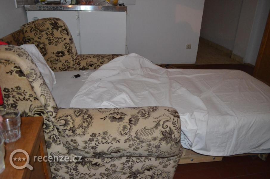 V izbe bol televízor,manž.postel, prístelka,chladnička..na prespanie nám to stačilo,v podstate sme ani viac nečakali..čo ale bolo fakt nepríjemné bol hluk z ulice,,pravidelne v noci sme sa budili na kvílenie ožratých dovolenkárov z ulice, motorky,autá.. keď prechádzalo smetiarske auto,mysleli sme že je koniec sveta..