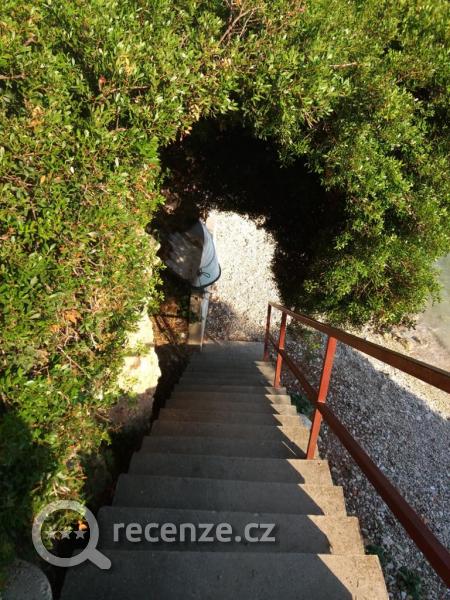 spoustu malých plážiček dostupných po schodech z promenády, kde jste úplně sami, nutné boty do vody