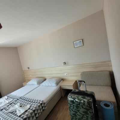 Vyhovujicí vše až na absenci přijezdového a odjezdového zázemí.Není se posledí a prvni den kde převlect a vysprchovat.To je jediné mínus(ale zásadni)Doporučuji majiteli zapracovat a pokusit se doplnit srchu(klidnĕ venku)Místnost odjezdovou klidnĕ využit v časti prostorné restaurace-která je odplledne prázdná..Jinak vše vyhovujicí a snadné-snad až na výpadky wifi a signnálu..