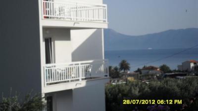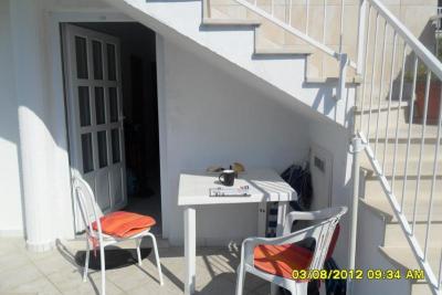 Apartmán měl malou dvoulůžkovou ložnici, ale na přespání dobré. V kuchyni byl rozkládací gauč,stůl a židle, vařič, MVT a TV. Za poplatek klimatizace. V koupelně jeden větší nedostatek - manžel měl problém se vejít do sprchového koutu, kam byl opravdu úzký vstup-takže pozor, kdo má větší nadváhu, bude mít problémy. Venkovní posezení u stolku před apartmánem, díky velké zastavěnosti je výhled na moře pouze částečný.