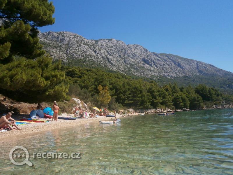 Pláž jsme využívali menší za parkovištěm. Oblázková, částečně zastíněná stromy.Boty do vody nutné - ježci. Voda v moři průzračná a teplá.