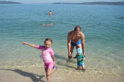 plaze jsou hned v arealu,cca 2 minuty chuze,krasny vyhled z terasy pri jidle nebo piti,jiank jsou oblazkove, pisek i betonove,pro nas s detmi nema chybu a jen mohu doporucit:)