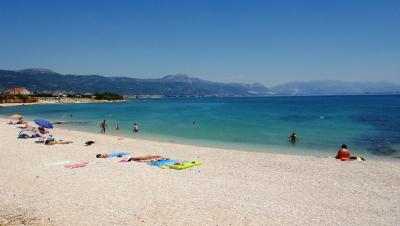 Pláž u penzionu je pěkná, po dvou třech krocích ve vodě už je pouze písek, bez ježků. Nádherná pláž je cca 5 km od penzionu kousek od letiště. U této pláže je hned hospoda/bar, pizzerie. Pod hospodou/barem byly k dispozici dva velké slunečníky, s kterými nelze hýbat, ale jsou volně dostupné pro všechny bez poplatku, jinak je pláž nekrytá. Bylo zde relativně málo lidí (ovšem byli jsme opravdu začátkem sezony konec červen - začátek červenec). Tuto pláž rozhodně doporučuji!