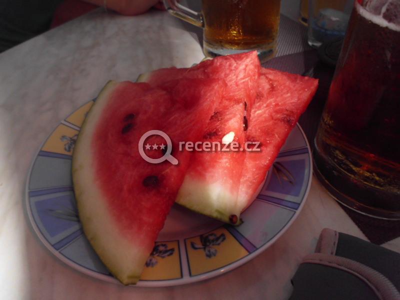 Hlavní důvod mojí recenze je ohledně stravování. Proto je tato kritika určena pro výběr ubytování s polopenzí. Pozor tento hotel nemá restauraci v přízemí, jak je všude uváděno, ale na jídlo se chodí do cca 300m vzdáleného penzionu. Dále upozorňuji na hodně malé porce, jedlíci nebudou určitě spokojeni. Snídaně - např. 2ks nožiček kuřecích párků, nebo talířek se žlící pomazánky, nebo klobása o velikosti palce - to vše přídělem na osobu, jinak chlebu a másla dle libosti (díky bohu), večeře - většinou docela chutné, výběr ze 3 jídel vždy při snídani, takže není moc představa jak to bude vypadat, a hlavně malinké porce - vešlo by se na malý talířek. Snad jen den, kdy bylo kuřecí stehno, to bylo celé a docela i velké, ale zase byla jen žlíce přílohy a stehno bylo spíše vařené, než pečené. Jako dezert k večeři - plátek melounu, jablko, broskev...