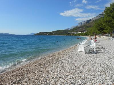 Pláž byla vzdálená 200m ,což nam nevadilo,měli jsme každodenní menší procházku po pěkným Tučepi.
