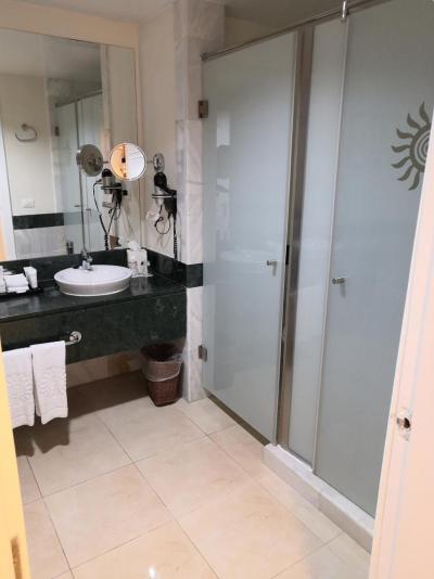 Na pokoji vše nutné, klima i ventilátor, plný bar, wifi na dosah i na pokojích, trezor, set na kávu a čaj.