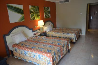 Ubytování bylo O.K. Dosti velký pokoj s 2 postelemi, minibar (doplněný pouze vodou 2x 1,5 l denně, žádné pivo, ani kola, sprite, nic). Prý, že si to můžeme dát v baru. No zvykli jsme si na to, ale už jsme se rozmazlili z minulých zájezdů do Dominikánské republiky a Kuby. Nicméně zvykli jsme si na to. Trezor se musel platit, ale nebyl potřeba. Trochu problém s klimatizací, byla hlučná a nedala se vůbec nastavit teplota. Buď jsme měli zapnuto nebo vypnuto.