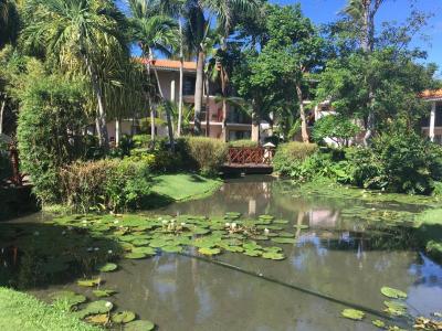 Celý hotel sa nachádza v krásnej tropickej záhrade. Najväčšou atrakciou pre mňa boli plameniaky v jazierku nad ktorým sa nachádzala reštaurácia.
